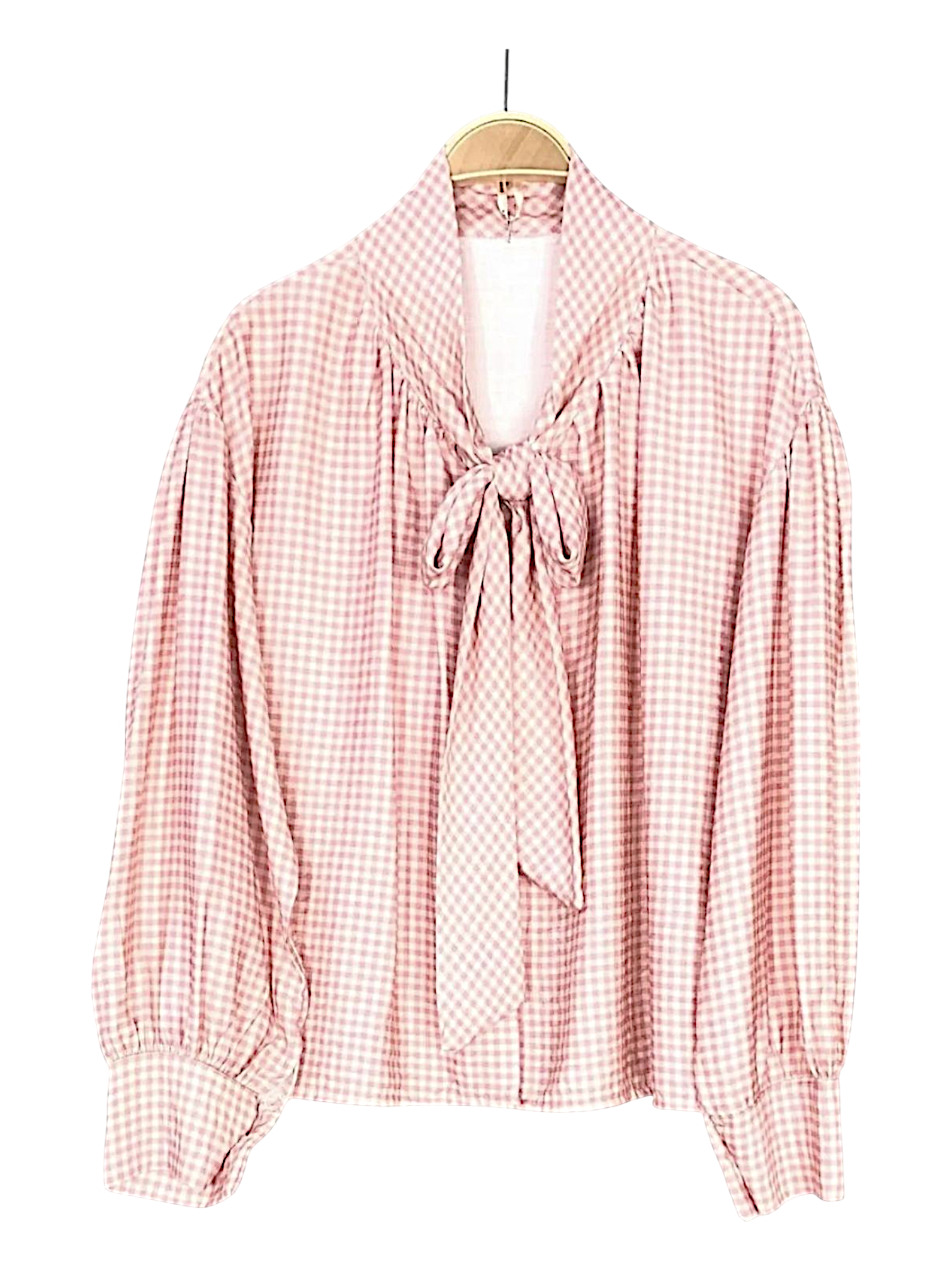 Blusa corta con lazo, disponible en dos tonos: morado (o lila) y rosa, con estampado Vichy que añade un toque clásico y fresco. Perfecta para mujeres de talla 38, 40 y 42, esta blusa es ideal para un look casual o combinado con falda llarga del mismo tejido también disponible en tienda !!