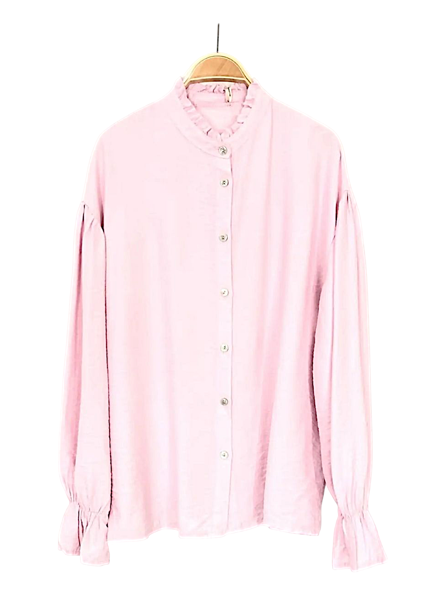 Blusa con cuello Gorguera, de corte ancho y mangas fruncidas. Con un estilo romántico y bohochic, esta prenda es perfecta para mujeres de talla 40 a 44. Una opción ideal para lucir a la última esta temporada.