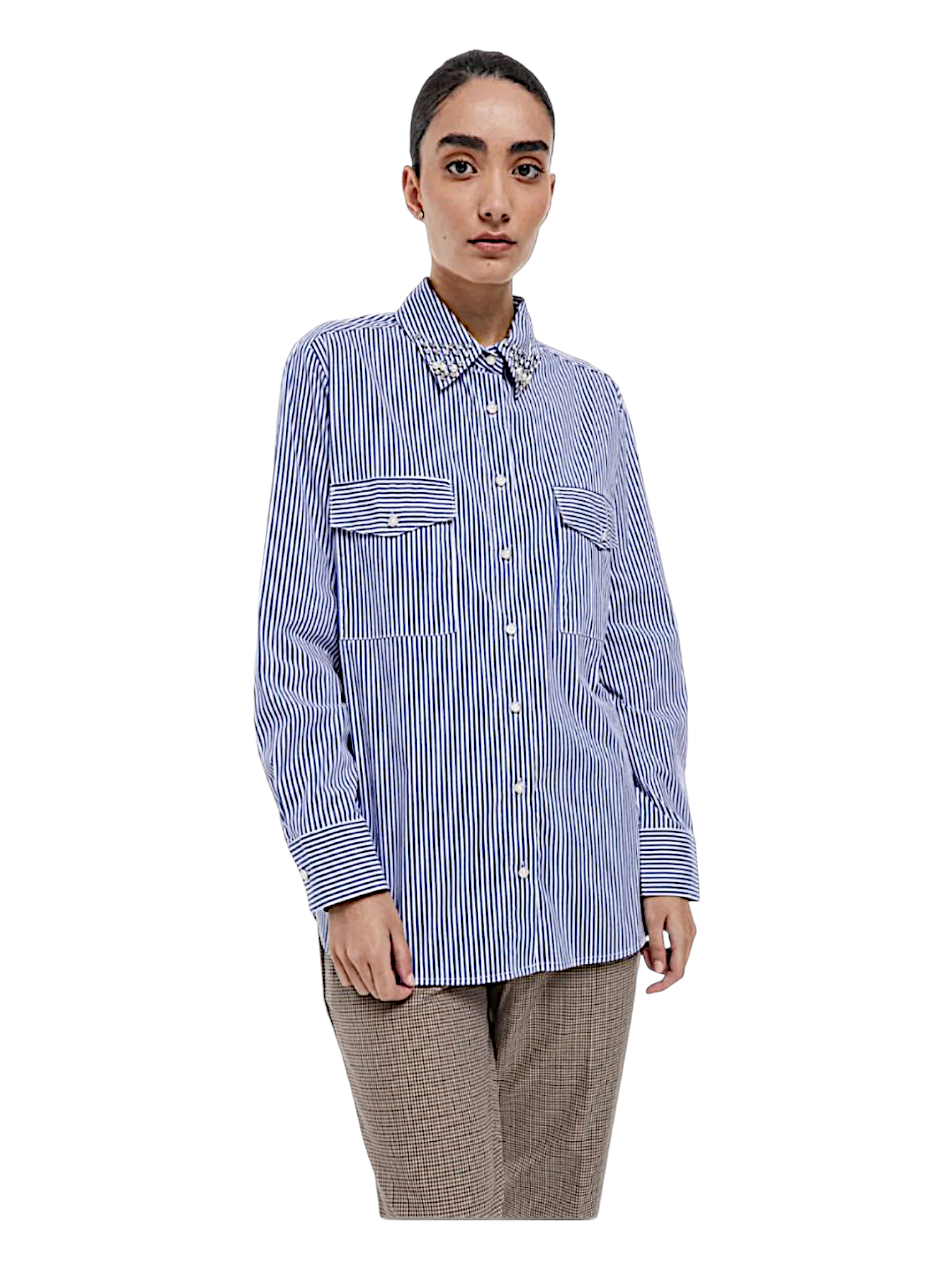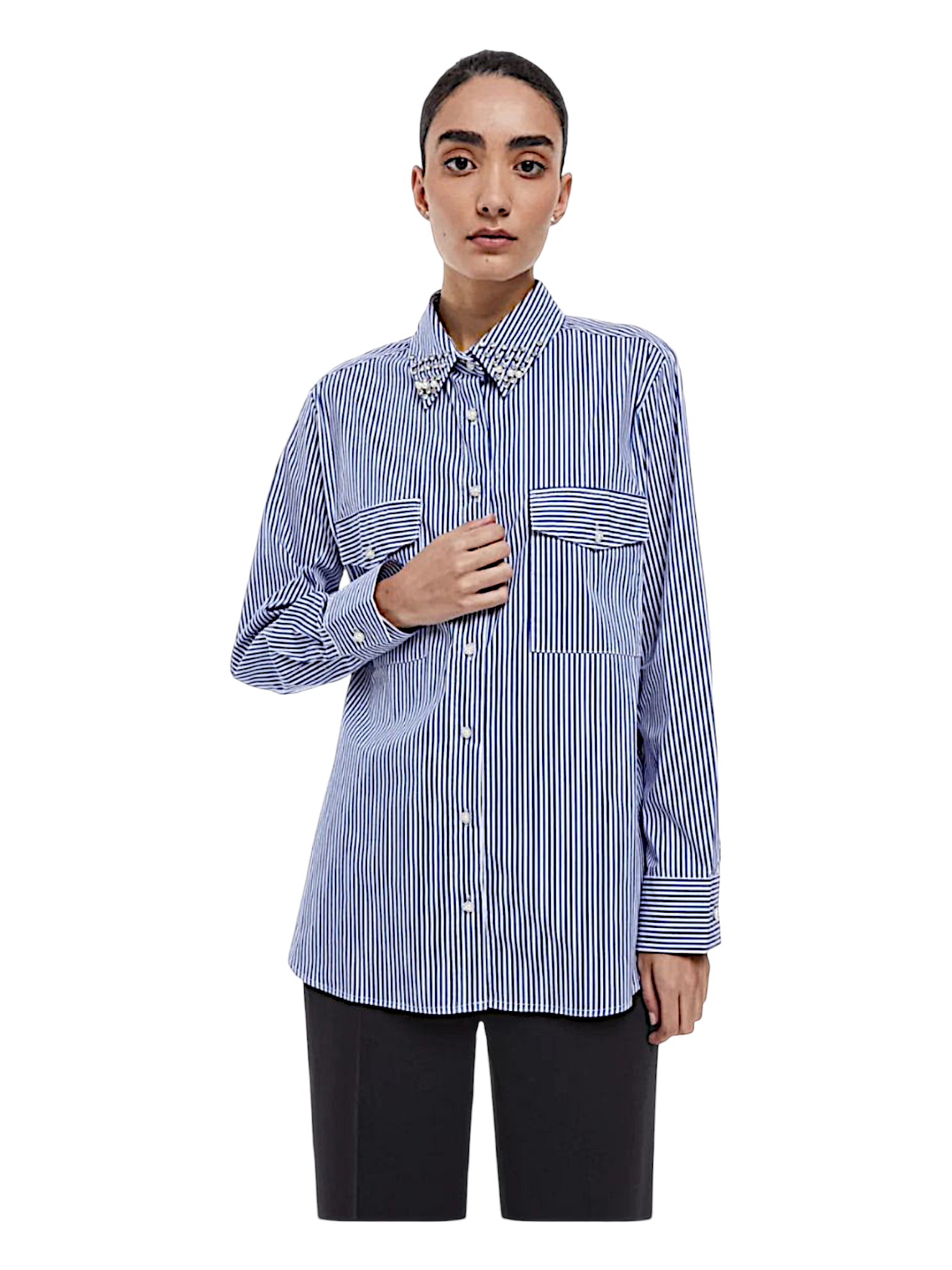 Eleva tu estilo con esta camisa, su sofisticado cuello con cristales te darán un look elegante y versátil. Perfecta para combinar con cualquier outfit y destacar en cualquier ocasión. No podrás resistirte a su encanto !!!
