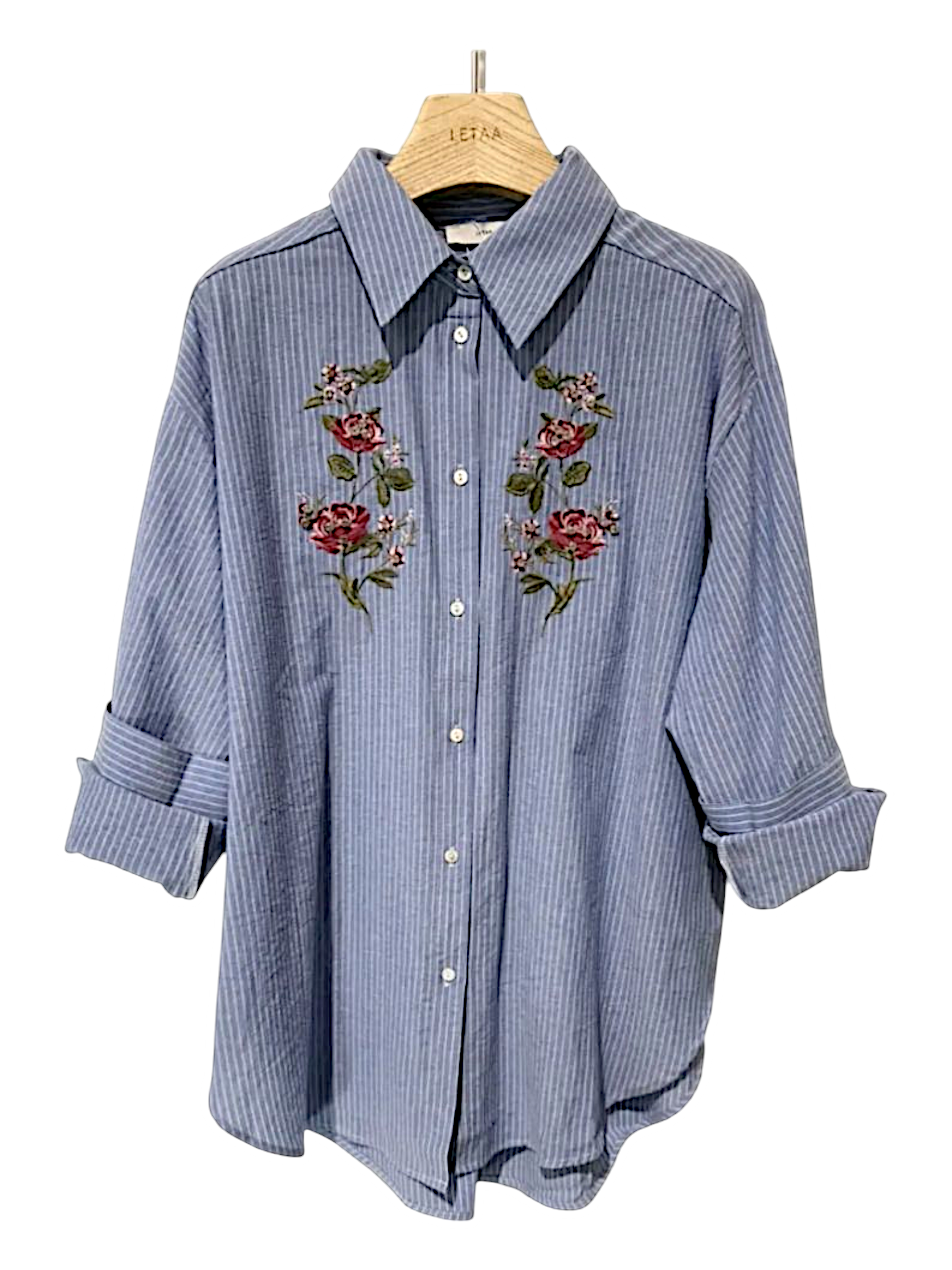 Esta camisa de Rayas es la prenda perfecta para estar a la moda esta primavera. Versátil y elegante con detalles de bordados de flores. No esperes más y añade esta prenda clave a tu armario!!!