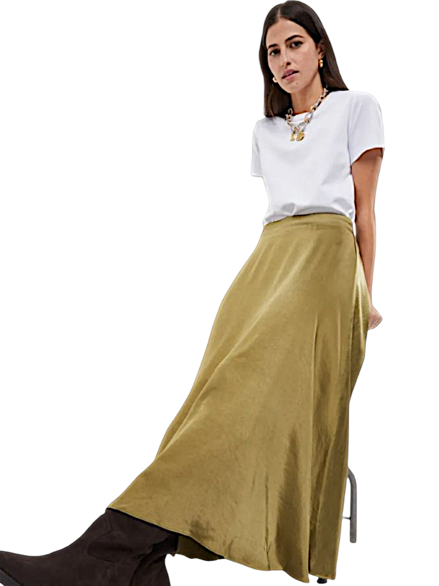 Añade un toque de elegancia y comodidad a tu armario con nuestra Falda Satinada con Vuelo. Por su cinturilla elástica y su suave tela te hará sentir cómoda y con estilo en cualquier ocasión. Disponible en talla única, esta falda se adapta a tallas 38, 40 y 42.